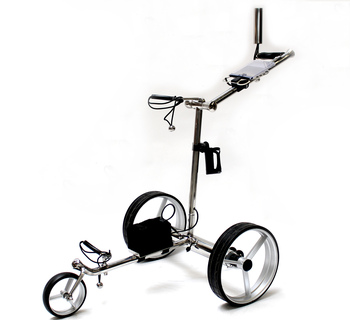 Beautiful golf trolley with a modern and sleek look. Our trolley are made of high-quality stainless steel,aluminium or carbon, wind and weather resistant. Two powerful in-shaft motors make it easy and effortless to play a round of golf. With the lithium battery, it runs 36 holes. The trolley is quick and easy to assemble and disassemble. It consists of 5 parts and can therefore be considered as a compact package and takes up little space in the car or club locker. In short, a joy to walk in and many others can attest to this.